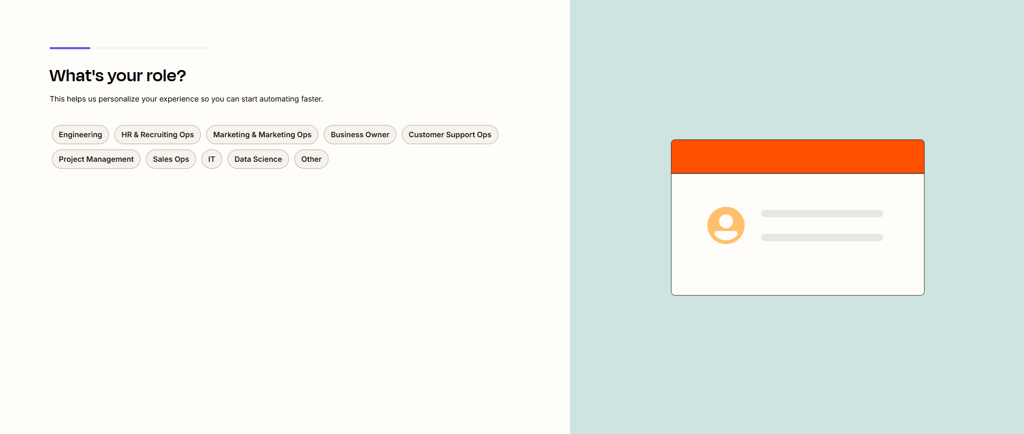 When you first log into Zapier, the dashboard greets you with “What’s your role?” This step is important because it customizes your experience, suggesting relevant apps, workflows, and templates. Choose your role based on your main tasks—options include marketer, developer, business owner, or team member. This ensures the recommended Zaps are most useful for you.